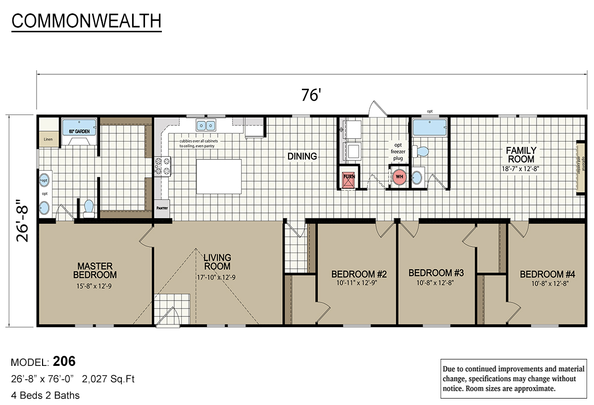 BEDS: 4 BATHS: 2.00 SQ FT: 2027 W X L: 26′ 8″ x 76′ 0″